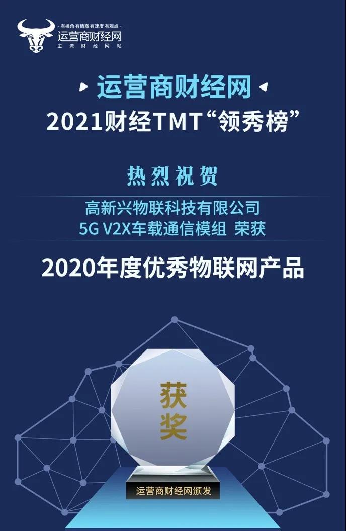 2021年中国财经TMT领秀榜 ,美狮贵宾会车载通信模组荣获“2020年度优秀物联网产品”