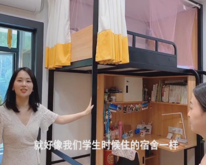 在宿舍区,小羊先是“眼馋”Loft公寓拎包入住的配置,又在其普通公寓里找到了青春的气息,似乎回到了大学宿舍。